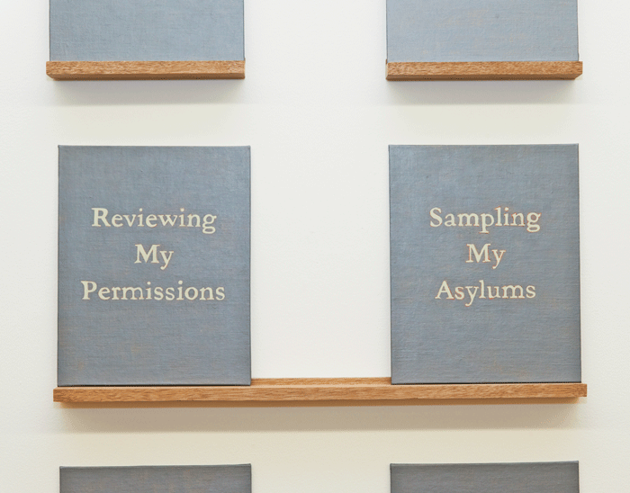Lynne Barwick, Phantasy Island, 2013, acrylic paint on linen board, wooden shelves. Installation dimensions: 954mm x 1266mm. Photo: Felicity Jenkins